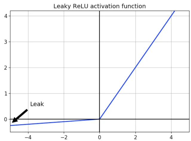 이렇게 음의 입력값에서 값이 새는(leak) 함수가 Leaky ReLU다.