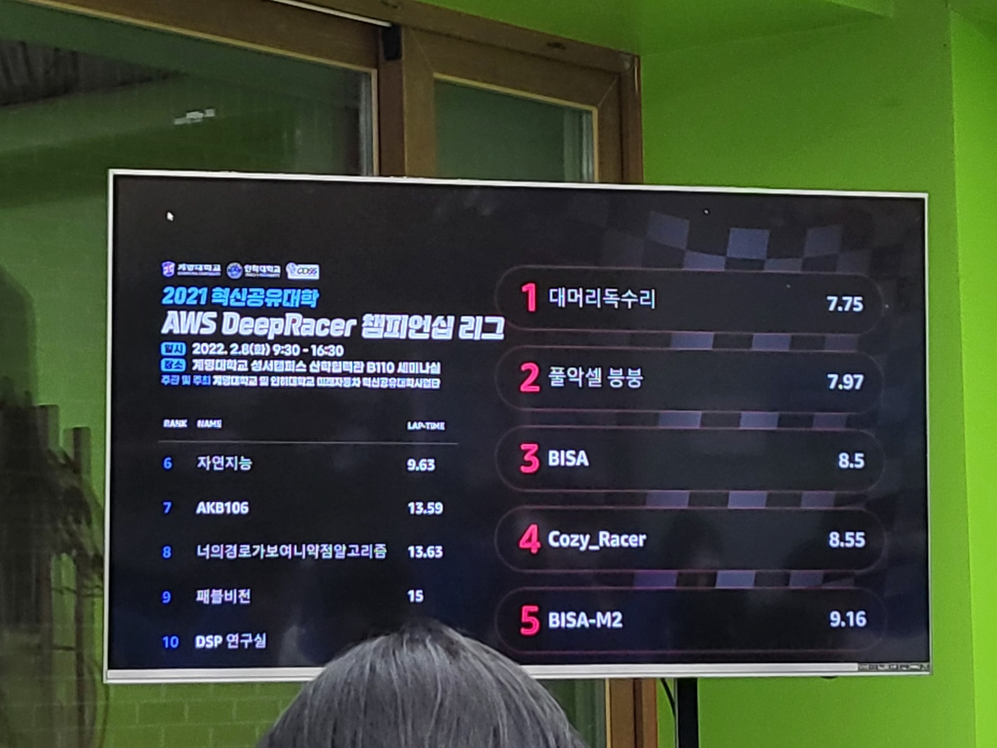 이제 본 대회 결과를 알려주겠다.