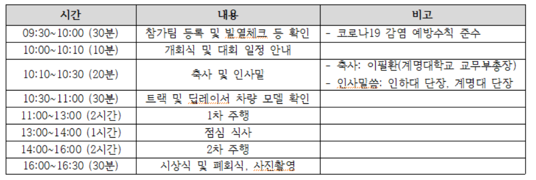 본격적인 대회 일정은 위와 같다.