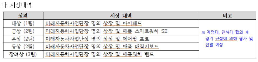 금상이 애플워치, 장려상이 애플워치 밴드다.