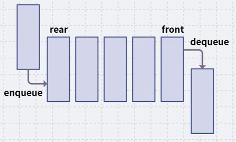 값이 들어올 때는(enqueue, insertion할 때는) 뒤쪽(rear, tail, back)으로 들어온다.