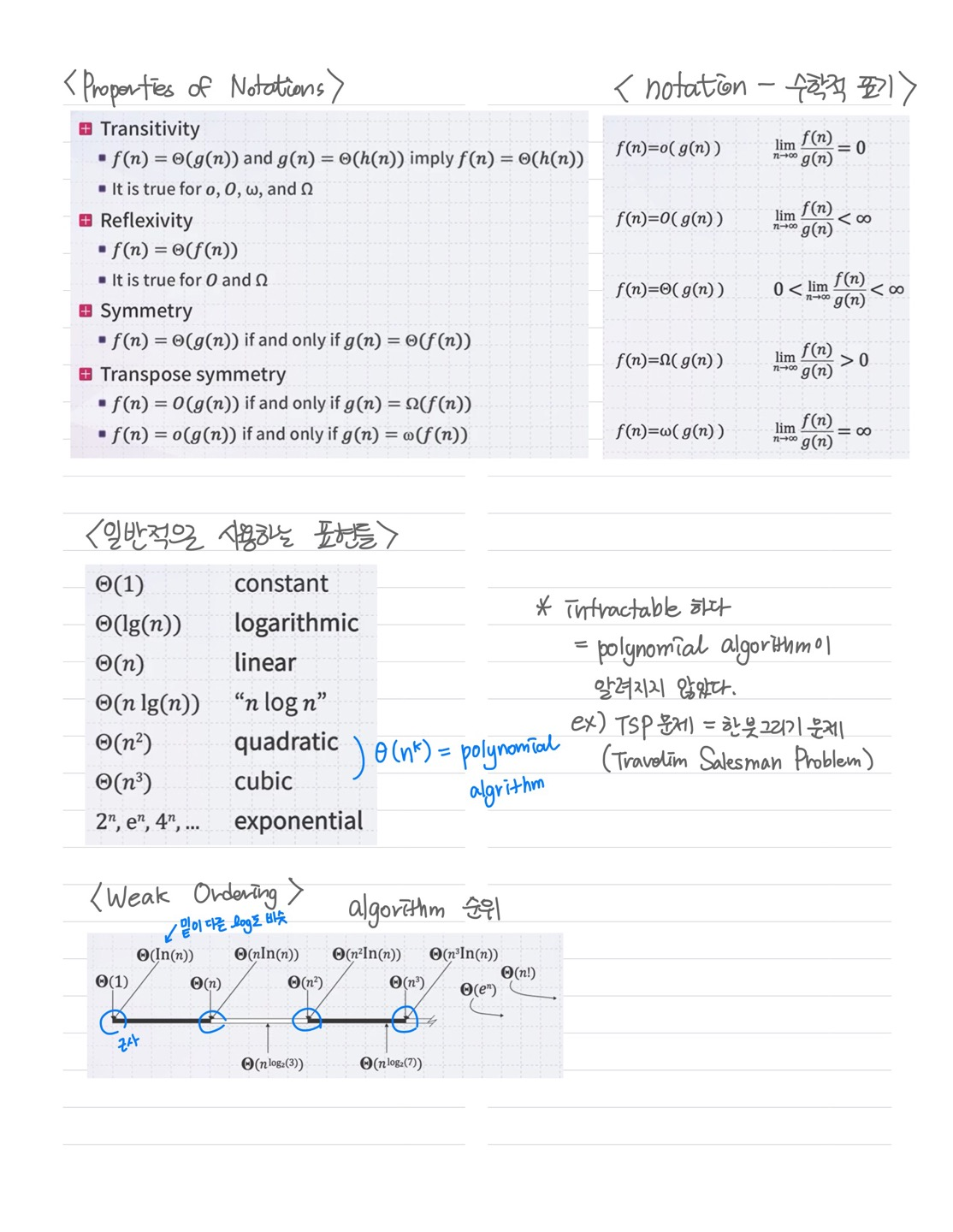 오늘은 asymtotic analysis에 대해 배우고 여러가지 알고리즘의 복잡도를 표현하는 notation에 대해 배웠다.