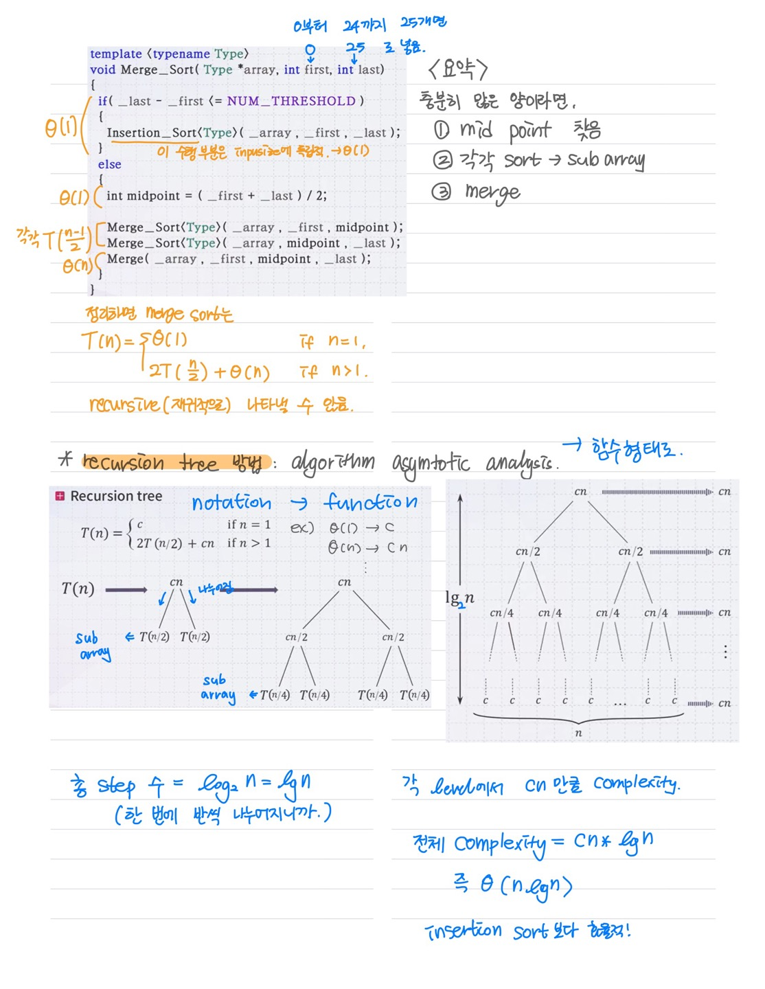 생각해보면 당연히 N이 늘어날수록 2가 곱해지기 때문에 당연한데 괜히 merge algorithm때문에 헷갈렸다.