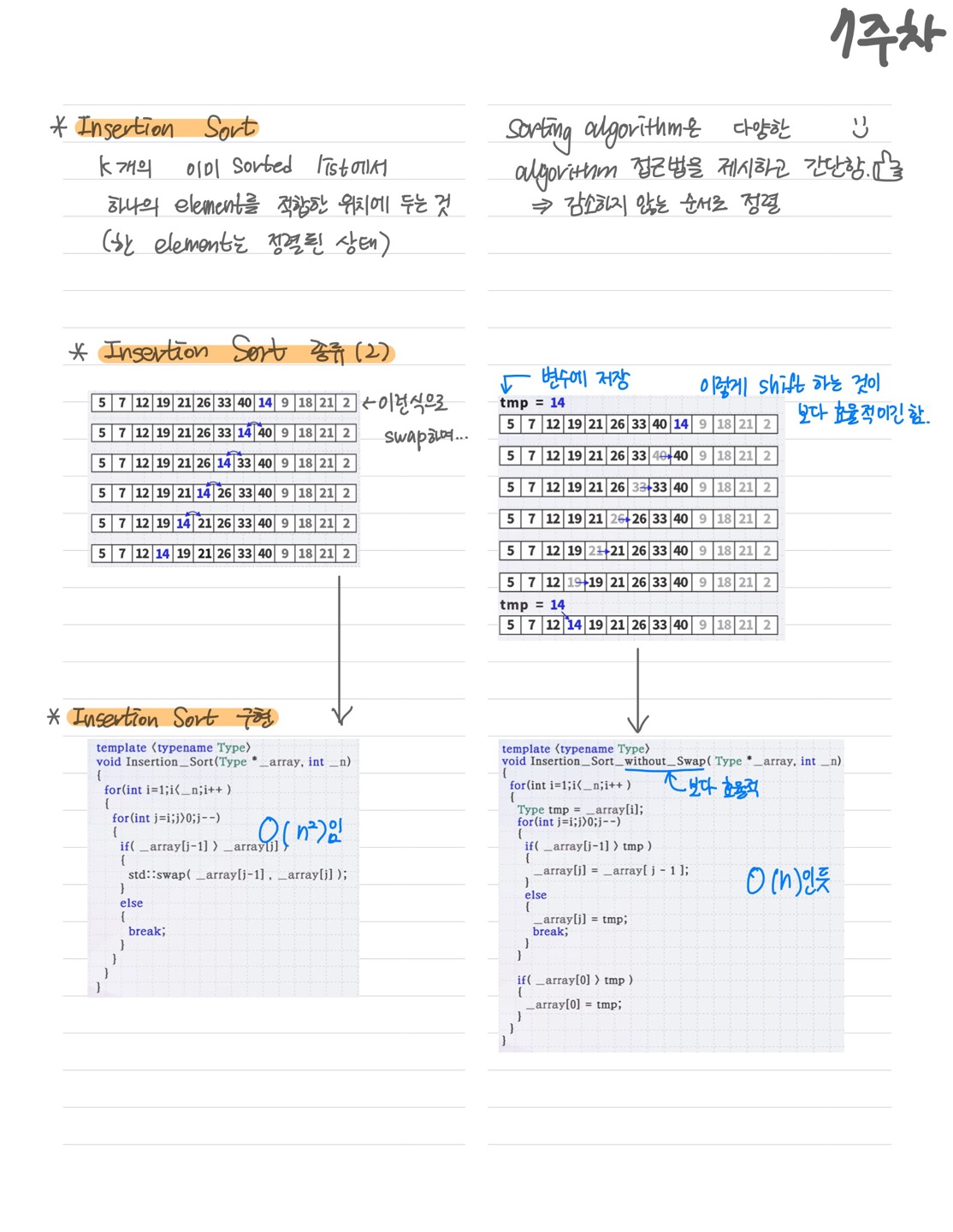 Insertion Sort는 이름과 같이 새로운 element를 삽입하며 정렬하는 알고리즘인데,