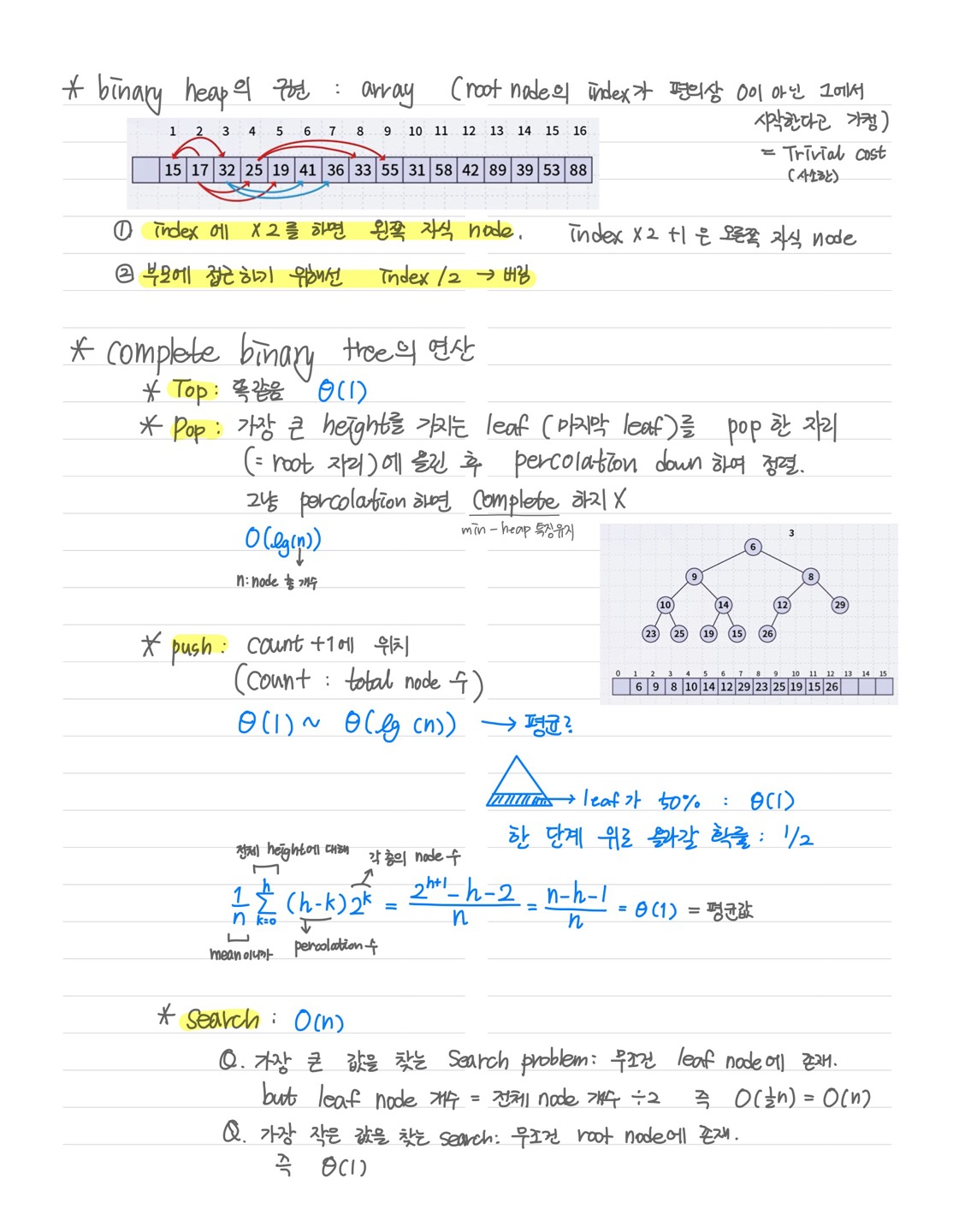 complete binary tree의 push연산을 배우면서 평균 push연산의 complexity를 구해보았는데