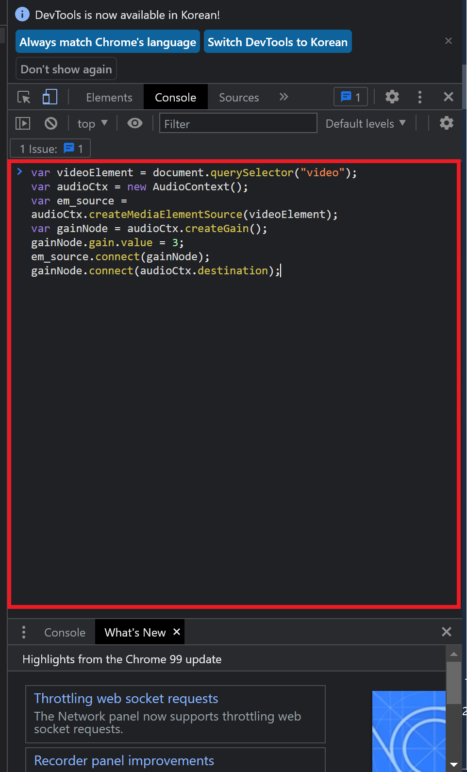 var em_source = audioCtx.createMediaElementSource(videoElement);